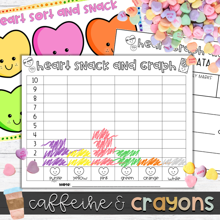 - 3 graph choices: 1 with color words, 1 with just hearts (to color in candy heart colors), and one blank to write in color words