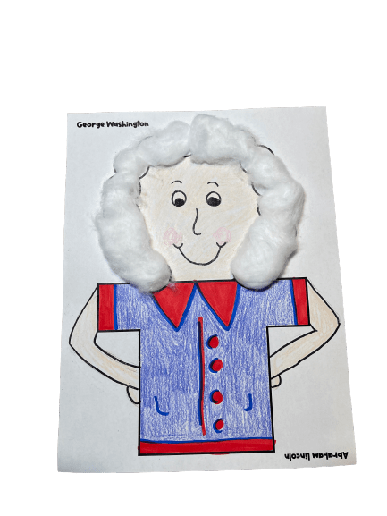 Art: Make American flags using paint or construction paper; do a project based learning activity by assigning each group a national symbol and have them create and label it, create your own flag, and/or make George Washington and Abraham Lincoln portraits. Follow Art Hub drawing videos and write a sentence to go along with your drawing. Grab my Presidents’ Day puppet freebie and create both presidents with this reversable template!