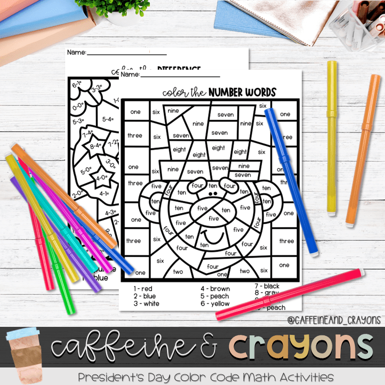 I like to make my math and literacy centers match the weekly theme. These math color codes printables are meant for an independent or partner math centers. There are 4 different types of color codes to match skill levels- great for review, a challenge, or meet them where they are. You can print the color answer key for them to check their work as they go or when they get stuck.