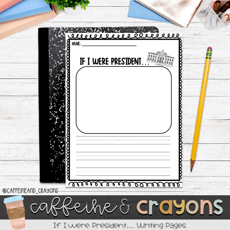 Use the this narrative writing prompt: “If I were president…” I love the answers that the kiddos come up with- one of my favorites, “If I were president, I would make everyone eat spaghetti.” Mine would be to pay teachers more and abolish meetings, but I digress…