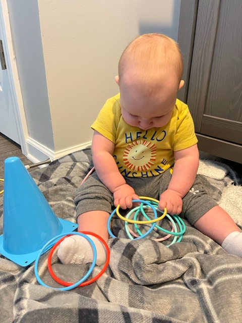 - Call out what you want them to toss their ring onto, for example: “Toss your ring on the cone that says, see”.