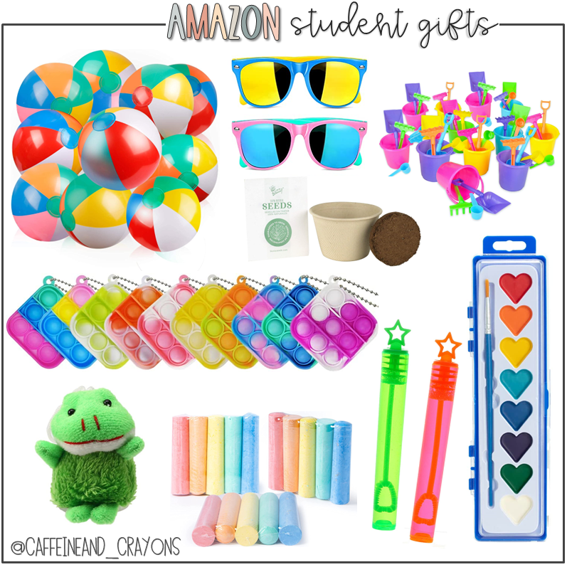 My go-to places for EOY gits are Amazon.com and Dollar Tree. I can usually find class sets on Amazon and the Dollar Tree has a good variety of summer themed items this time of year. Another good resource for EOY bulk gifts is Oriental Trading Company.
