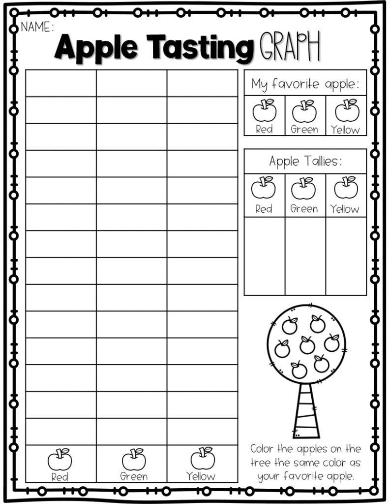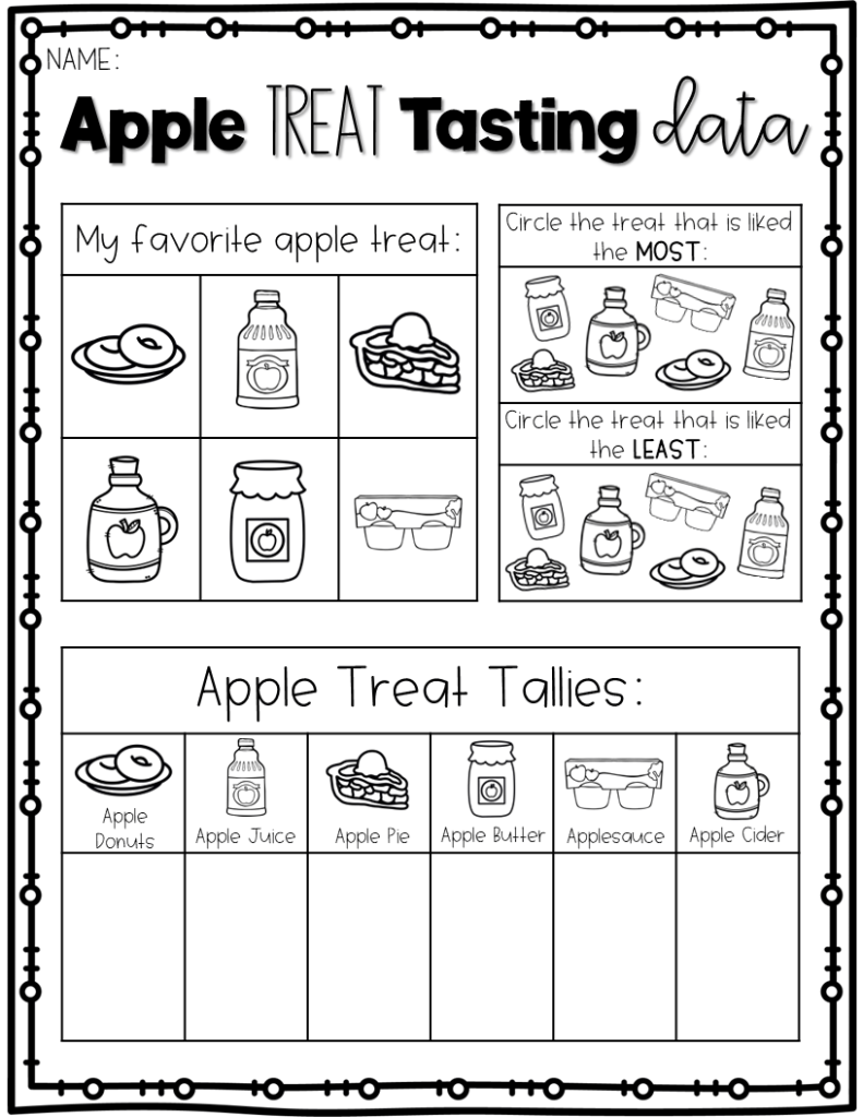 Try a variety of items made with apples, like: apple juice, apple cider, apple donuts, applesauce, apple butter, etc. Graph and write about your favorites.