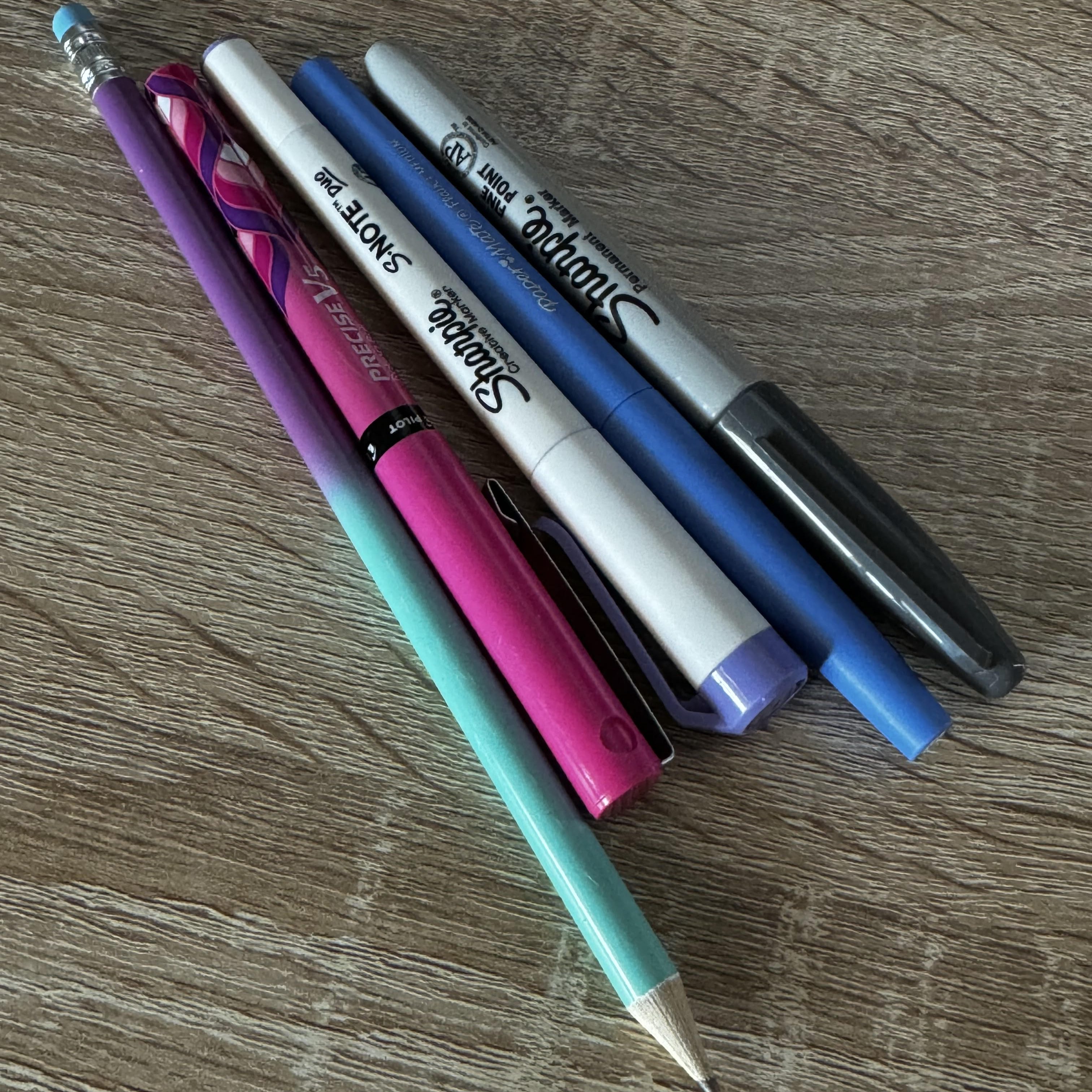 - Writing utensil of choice: what are you comfortable with? What thickness do you want? What look are you going for? My favorites to use are a Papermate Flair pen or a Sharpie S-Note Duo marker.