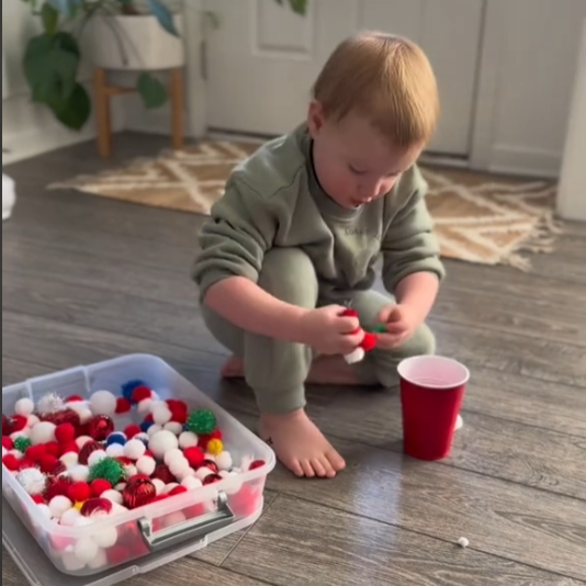 Other ideas for the season- bells, winter animals, fake snow, letters, numbers, dreidels, stars, holiday confetti, holiday pictures, wrapping paper, tissue paper, ribbon, bows, rice (for snow), cotton balls, beads, themed erasers, kinetic sand, sand, snowflakes, etc. Check out my Amazon list for sensory bin finds here!