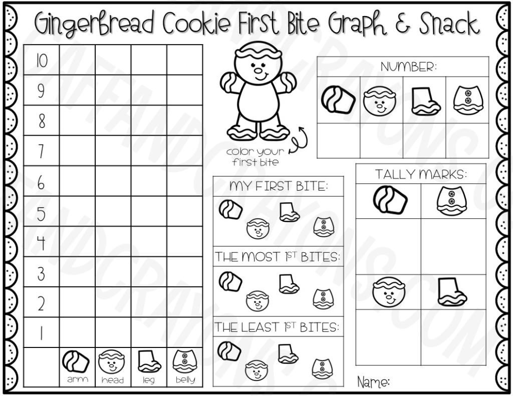 Use post it notes or the provided gingerbread cookie pieces for students to write their names and chart their first bites.